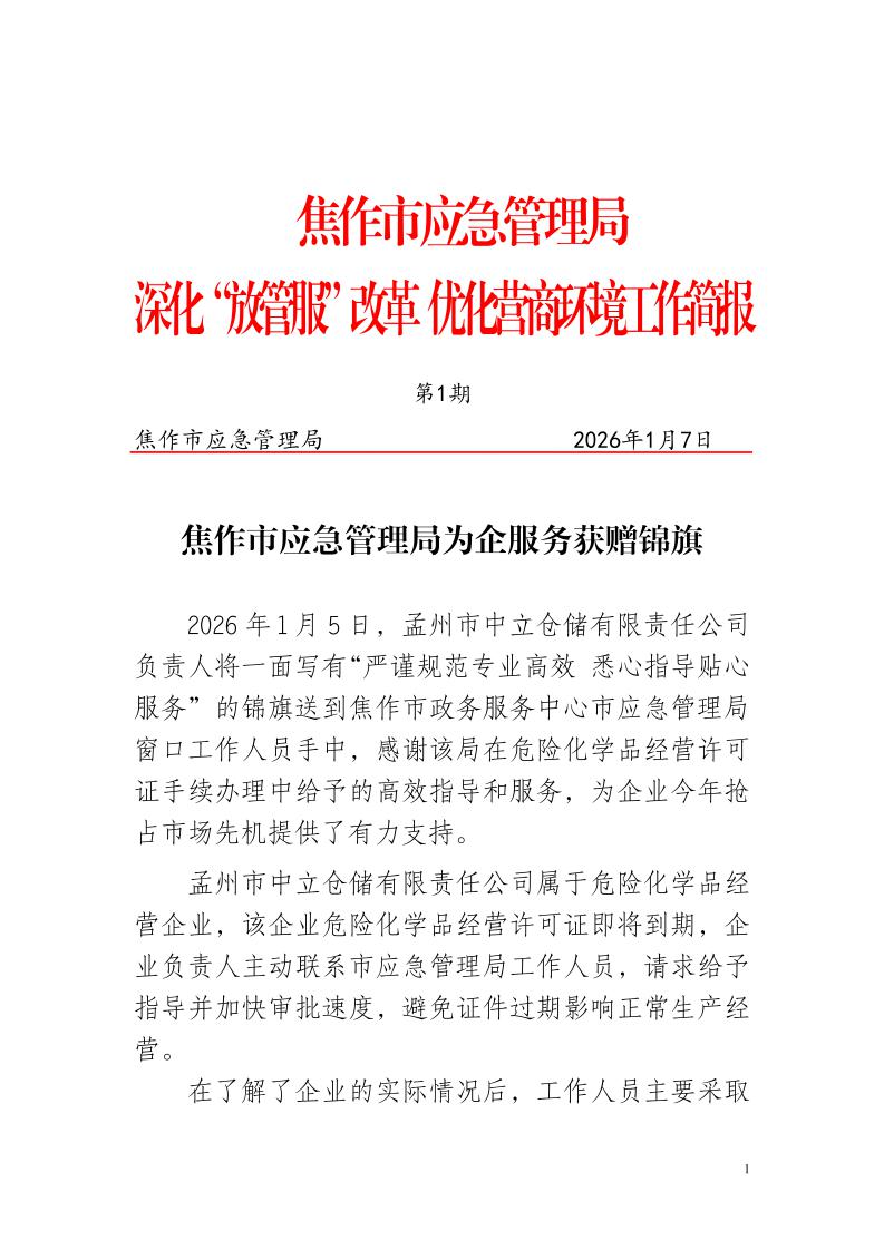 深化“放管服”改革 优化营商环境工作简报2026第1期