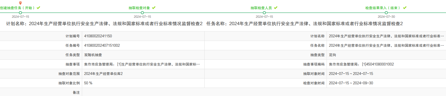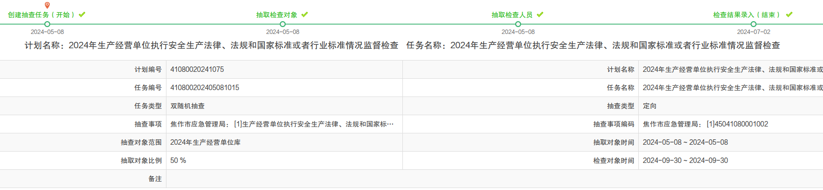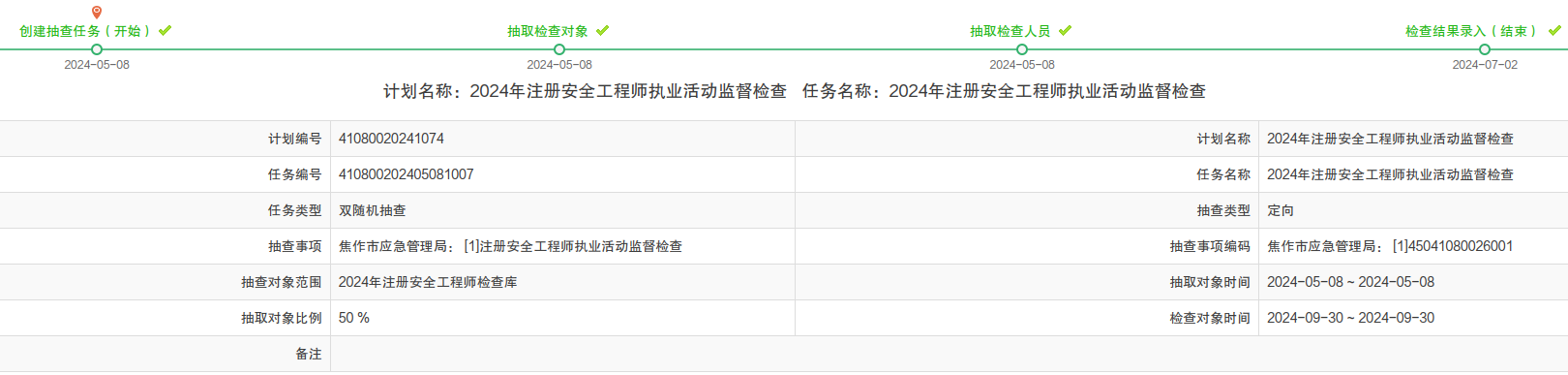 2024年随机抽查事项结果
