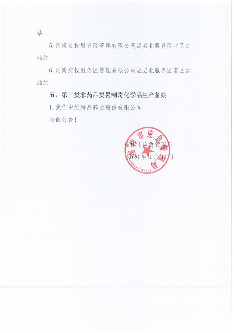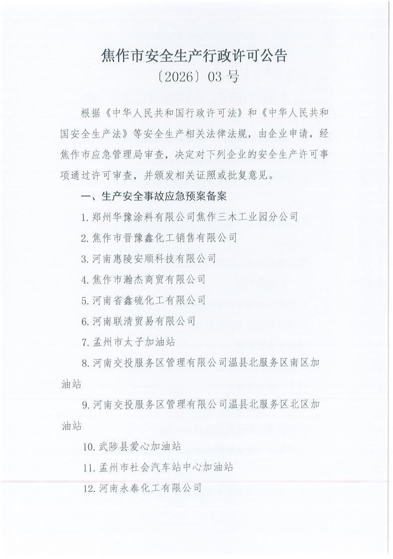 焦作市安全生产行政许可公告(〔2026〕3号)